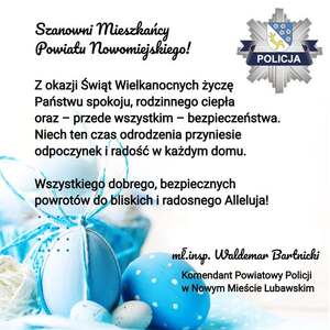 Życzenia Wielkanocne Komendanta Powiatowego Policji w Nowym Mieście Lubawskim