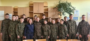 Tym razem uczniowie klasy I poznali zagadnie dotyczące musztry i ceremoniału policyjnego, a uczniowie klasy II zakres uprawnień policjantów m.n. legitymowanie, zatrzymanie osoby, kontrola osobista czy też przeszukanie osoby i pomieszczeń.