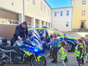 Na zakończenie spotkania każde z dzieci otrzymało Paszport Bezpiecznego Przedszkolaka z ich własnymi odbitymi odciskami palców i policyjne odznaki. A panowie policjanci na placu wewnętrzym komendy pokazali im policyjne radiowozy i motocykle.
