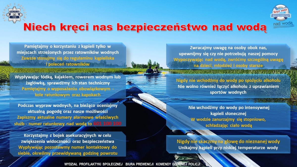 Woda to wspaniałe miejsce wypoczynku i rekreacji, z którego należy korzystać z zachowaniem zasad bezpieczeństwa i rozsądkiem, bo od tego zależy zdrowie i życie nasze oraz najbliższych!