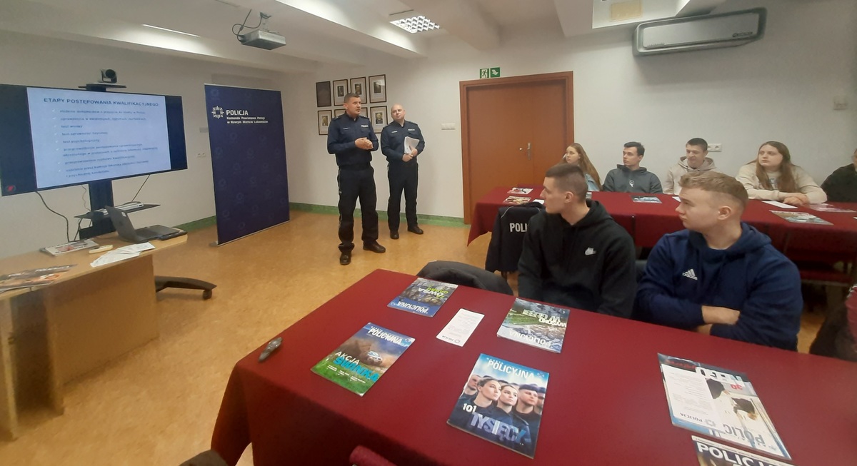 Nowomiejscy policjanci podejmują działania mające na celu podniesienie świadomości i poszerzenie wiedzy młodych ludzi na temat specyfiki policyjnej służby i kryteriów obowiązujących podczas doboru. Działania te skierowane są przede wszystkim do uczniów klas maturalnych wszystkich szkół ponadpodstawowych na terenie powiatu nowomiejskiego. W budynku Komendy Powiatowej Policji w Nowym Mieście Lubawskim odbyło się kolejne takie spotkanie z uczniami dwóch kl. IV Liceum Ogólnokształcącego im. C.K. Norwida w Nowym Mieście Lubawskim
