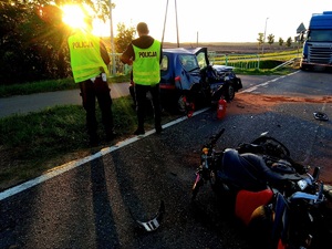 W sobotę ok. godz. 16:30 w Wawrowicach doszło do wypadku drogowego z udziałem motocyklisty. Według wstępnych ustaleń policjantów pracujących na miejscu tego zdarzenia wynika, że najprawdopodobniej kierujący seicento chcąc wykonać manewr skrętu w lewo nie ustąpił pierwszeństwa przejazdu kierującemu motocyklem jadącemu z przeciwka doprowadził do zderzenia pojazdów. Na miejscu zdarzenia pracowały wszystkie służby ratunkowe. Kierujący motocyklem z obrażeniami ciała został zabrany helikopterem Lotniczego Pogotowia Ratunkowego do szpitala.