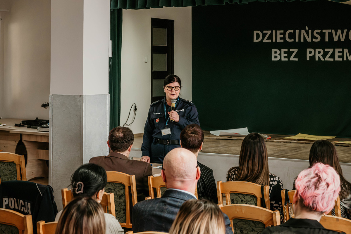 W czasie trwania kampanii nowomiejscy policjanci spotykali się z dziećmi i młodzieżą rozmawiając z nimi i uwrażliwiając na tematy różnych form przemocy. Ponadto we środę 19 listopada, wówczas, kiedy to przypadał finał całej akcji, wzięliśmy udział w Konferencji zorganizowanej przez Centrum Usług Społecznych w Kurzętniku dla przedstawicieli samorządu, sołectw, członków Zespołu Interdyscyplinarnego, grup diagnostyczno-pomocowych, przedstawicieli oświaty i służby zdrowia, przedstawicieli Gminnej Komisji Rozwiązywania Problemów Alkoholowych, poradni odwykowej i pracowników socjalnych. Podczas konferencji swoje wystąpienie na temat przemocy wygłosiła asp. szt. Martyna Roch-Szkutnik – Kierownik Rewiru Dzielnicowych Wydziału Prewencji Komendy Powiatowej Policji w Nowym Mieście Lubawskim.