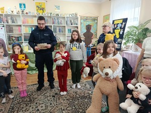 Dzielnicowi asp. szt. Dorota Kaczmarska wraz mł. asp. Łukaszem Groszkowskim zostali zaproszeni na spotkanie z dziećmi w Bibliotece Publicznej w Jamielniku. Spotkanie zorganizowano z okazji 123 urodzin Pluszowego Misia. Ale była to też doskonała okazja, by opowiedzieć najmłodszym o zasadach bezpieczeństwa w ruchu drogowym i zapoznać ich z numerami telefonów alarmowych.