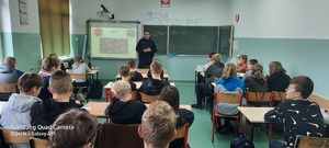 Spotkanie dzielnicowego z uczniami ostatnich klas Szkoły Podstawowej w Nowym Grodzicznie