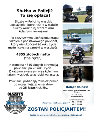 Myśląc o pracy, warto rozważyć taką, która połączy obowiązki służbowe z realizacją pasji i zainteresowań. Służba w Policji jest o wiele ciekawsza niż się większości osób wydaje, a wachlarz możliwości rozwoju jest ogromy! Wstąp w nasze szeregi i sprawdź jakie dajemy możliwości.