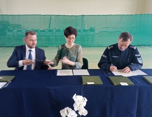 Komendant Powiatowy Policji w Nowym Mieście Lubawskim insp. Jacek Drozdowski, Wójt Gminy Biskupiec i Dyrektor Liceum Ogólnokształcącego Służb Mundurowych w Zespole Szkół w Bielicach zawarli porozumienie w sprawie współpracy w realizacji programu nauczania w klasach o profilu mundurowym.